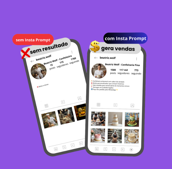 Crie bio, posts, vídeos com facilidade — usando prompts prontos que destravam sua comunicação em minutos, mesmo que hoje você sinta vergonha de aparecer ou nunca saiba o que falar.